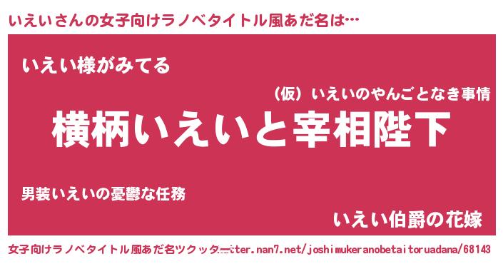 | ピコ太郎風あだ名 | 『イエ五郎』『ピイ十郎』『イコ次郎』 |
