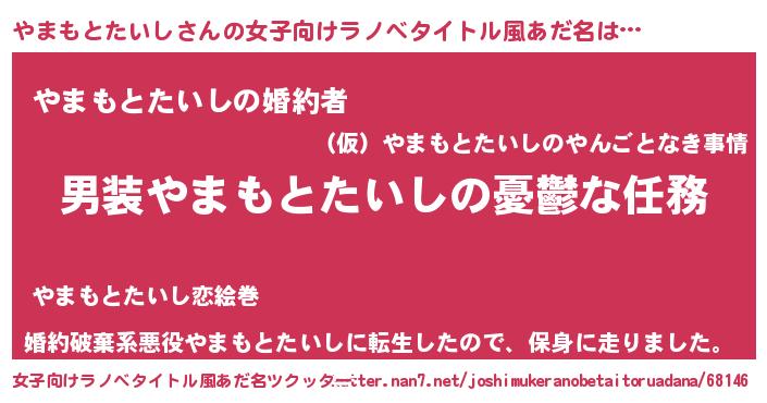 | 男性向けラノベタイトル風あだ名 | 『冴えないやまもとたいしの育てかた』 |