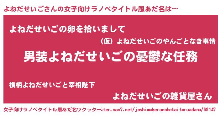 | 伝説のあだ名 | 『覚醒した遊び人よねだせいご』 |