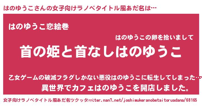 | ヘコむあだ名 | 『はのゆうこ(笑)』『はのぷりん』 |