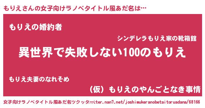 | 男性向けラノベタイトル風あだ名 | 『もりえという概念が存在しない退屈な世界 』 |