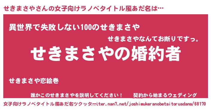 | 意味不明あだ名 | 『せきまさやフォーエバー』 |