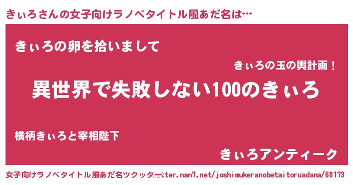 | 男性向けラノベタイトル風あだ名 | 『きぃろという概念が存在しない退屈な世界 』 |