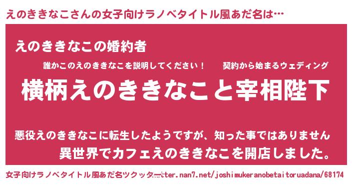 | 男性向けラノベタイトル風あだ名 | 『えのききなこに滅ぼされるだけの簡単なお仕事です』 |