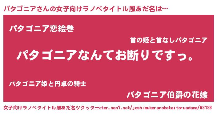 | 男性向けラノベタイトル風あだ名 | 『魔法科高校のパタゴニア』 |