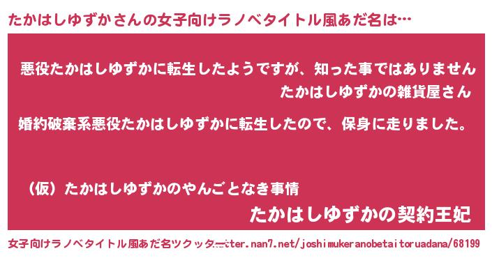 | 男性向けラノベタイトル風あだ名 | 『タカハシユズカスレイヤー』 |