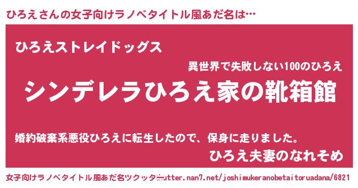 | 男性向けラノベタイトル風あだ名 | 『冴えないひろえの育てかた』 |