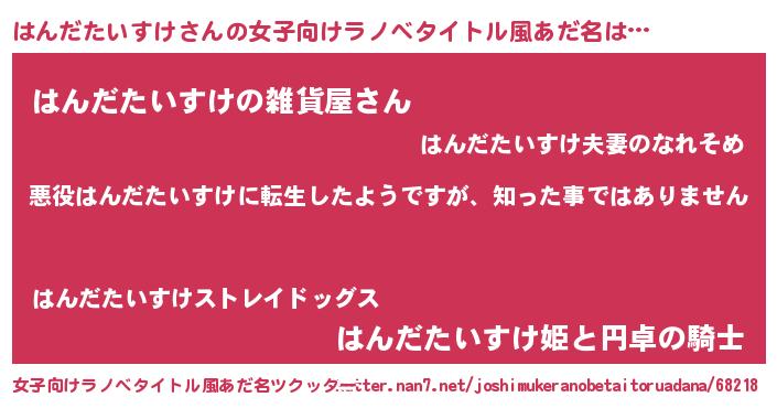 | 胡散臭い通販商品みたいなあだ名 | 『あなたにだけ特別に提供する世界で10本だけ現存している希少なブランデー…その名も「はんだたいすけ」』 |