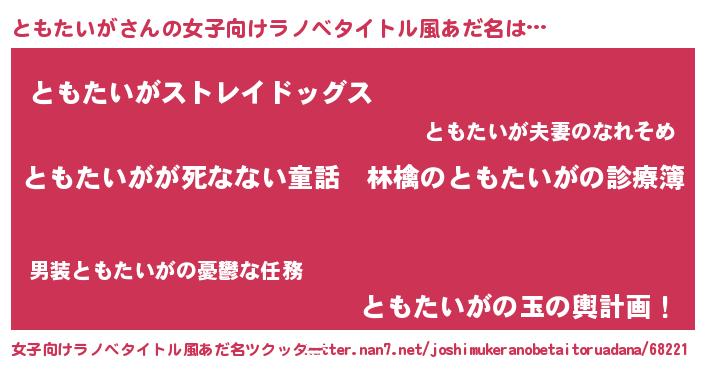 | 意味不明あだ名 | 『住所不定無職ともたいが(91歳)』 |