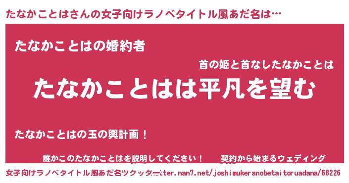 | 男性向けラノベタイトル風あだ名 | 『ダンジョンにたなかことはを求めるのは間違っているだろうか』 |