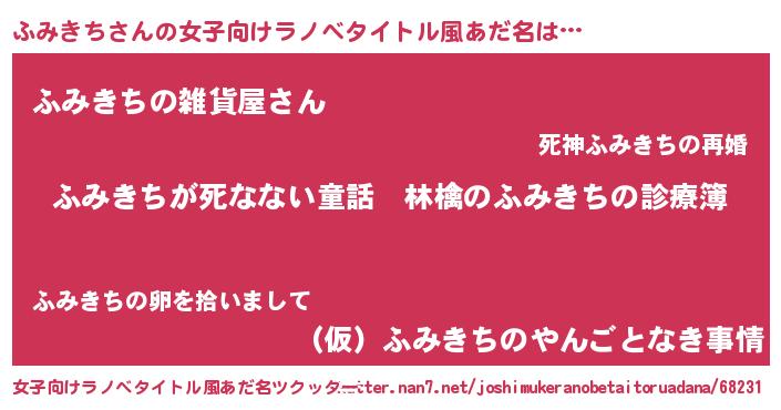 | 男性向けラノベタイトル風あだ名 | 『魔弾の王とふみきち』『ふみきちの憂鬱』 |