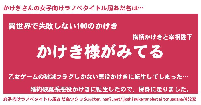 | ヘコむあだ名 | 『かけっ子』『かけき(笑)』『豆乳』 |