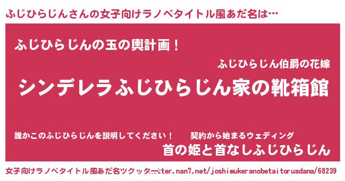 | 男性向けラノベタイトル風あだ名 | 『冴えないふじひらじんの育てかた』 |