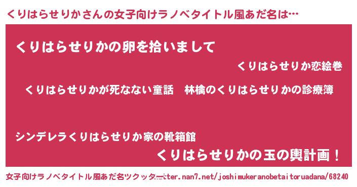 | 意味不明あだ名 | 『住所不定無職くりはらせりか(81歳)』 |