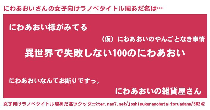 | 男性向けラノベタイトル風あだ名 | 『にわあおいという概念が存在しない退屈な世界 』 |