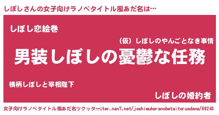 | 男性向けラノベタイトル風あだ名 | 『うちのしぼしが世界を掌握している!』 |
