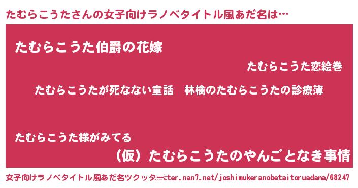 | 意味不明あだ名 | 『住所不定無職たむらこうた(6歳)』 |