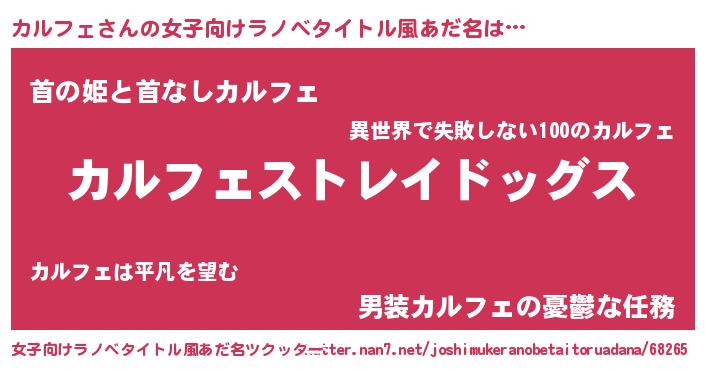 | 男性向けラノベタイトル風あだ名 | 『Re:カルフェから始める異世界生活』 |