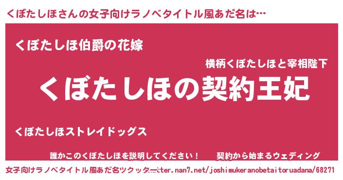 | 胡散臭い通販商品みたいなあだ名 | 『来世でも幸せになれる健康食品…その名も「くぼたしほ」』 |