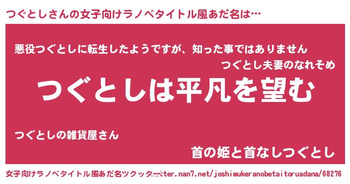 | 胡散臭い通販商品みたいなあだ名 | 『信頼と実績のネックレス…その名も「つぐとし」』 |