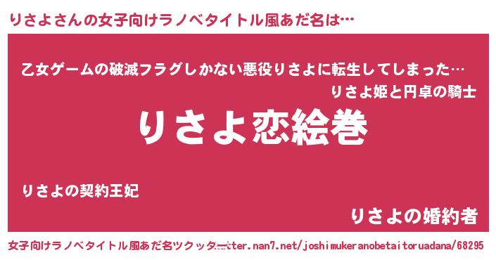 | 男性向けラノベタイトル風あだ名 | 『ノーゲーム・ノーリサヨ』 |