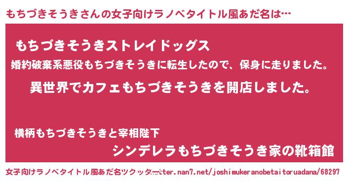 | 男性向けラノベタイトル風あだ名 | 『誰もが恐れるあのもちづきそうきが、ぼくの専属メイドになるようです。』 |