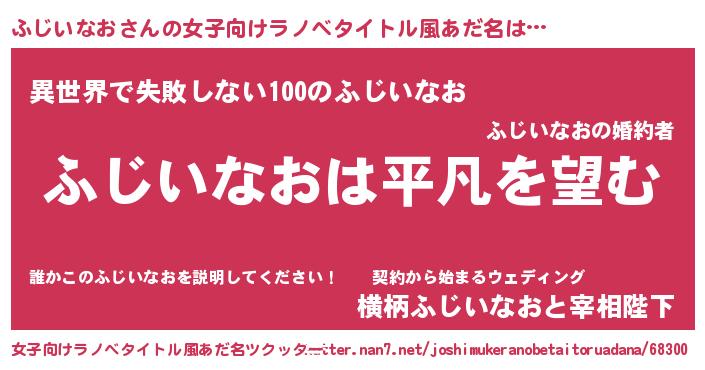 | 胡散臭い通販商品みたいなあだ名 | 『信頼と実績のサプリメント…その名も「ふじいなお」』 |