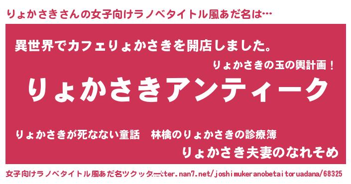 | 意味不明あだ名 | 『自称りょかさき』『永久保存りょかさき』 |