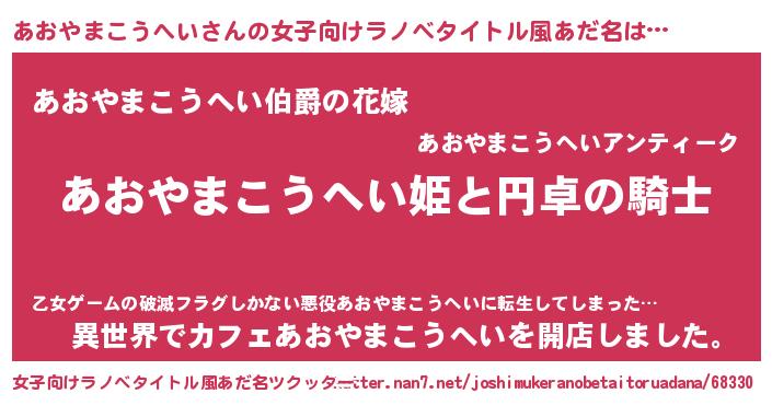 | 胡散臭い通販商品みたいなあだ名 | 『モテモテ間違いなし水晶球…その名も「あおやまこうへい」』 |