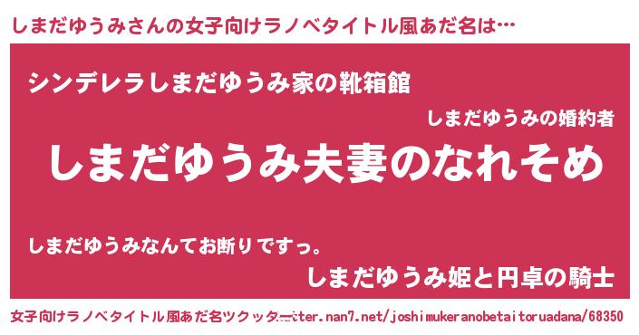 | 男性向けラノベタイトル風あだ名 | 『おまえをオタクにしてやるから、俺をしまだゆうみにしてくれ! 』 |