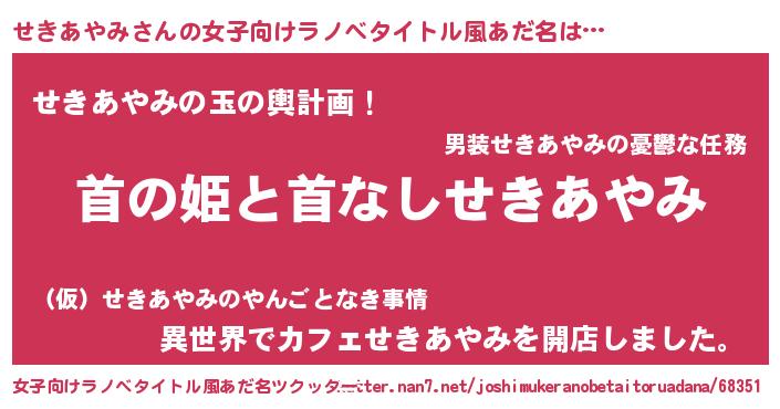| ヘコむあだ名 | 『せきあやみ(小並感)』『せきにゅー』 |