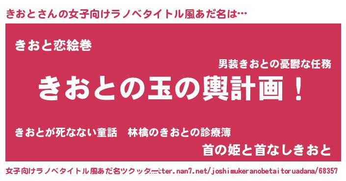 | 男性向けラノベタイトル風あだ名 | 『きおと~年齢イコール彼女いない歴の魔法使い~』 |
