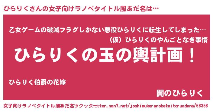 | 意味不明あだ名 | 『もやし科ひらりく属』『自称ひらりく』 |