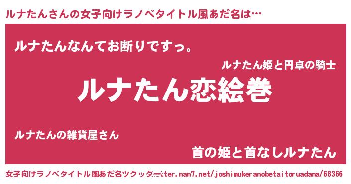 | 男性向けラノベタイトル風あだ名 | 『おまえをオタクにしてやるから、俺をルナたんにしてくれ! 』 |