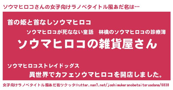 | 男性向けラノベタイトル風あだ名 | 『やはりソウマヒロコの青春ラブコメはまちがっている 』 |