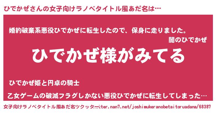 | 男性向けラノベタイトル風あだ名 | 『ひでかぜの嫁は女の子じゃないと思った?』 |