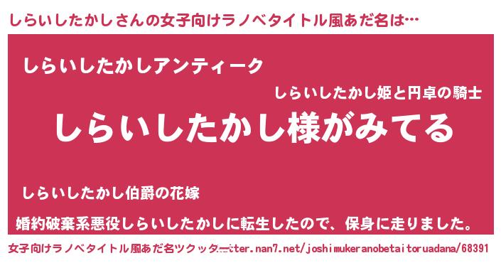 | 男性向けラノベタイトル風あだ名 | 『しらいしたかしの嫁は女の子じゃないと思った?』 |
