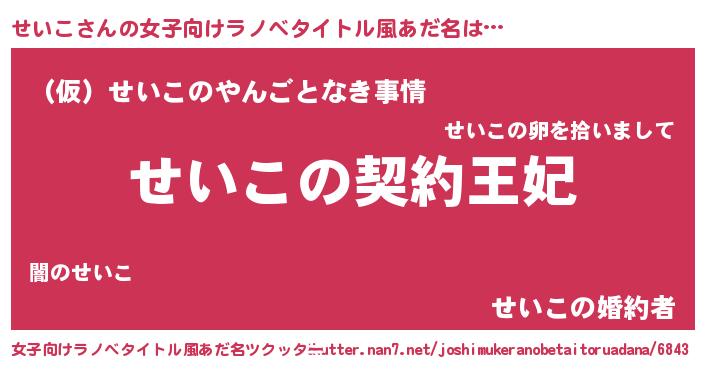 | 男性向けラノベタイトル風あだ名 | 『せいこという概念が存在しない退屈な世界 』 |