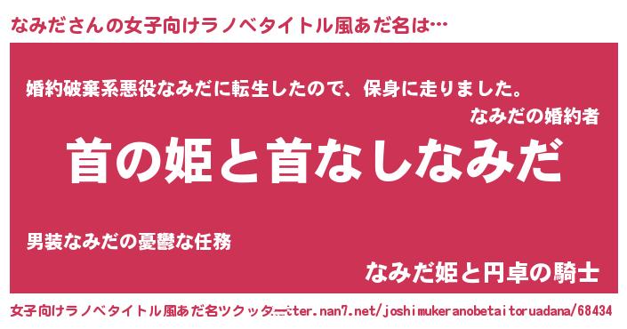 | 胡散臭い通販商品みたいなあだ名 | 『モテモテ間違いなし水晶球…その名も「なみだ」』 |