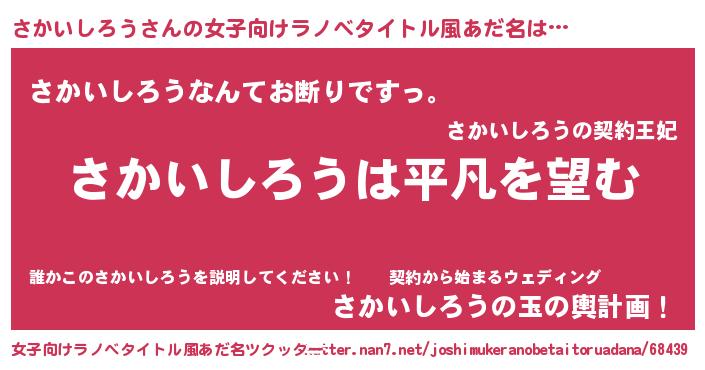| 男性向けラノベタイトル風あだ名 | 『ダンジョンにさかいしろうを求めるのは間違っているだろうか』 |