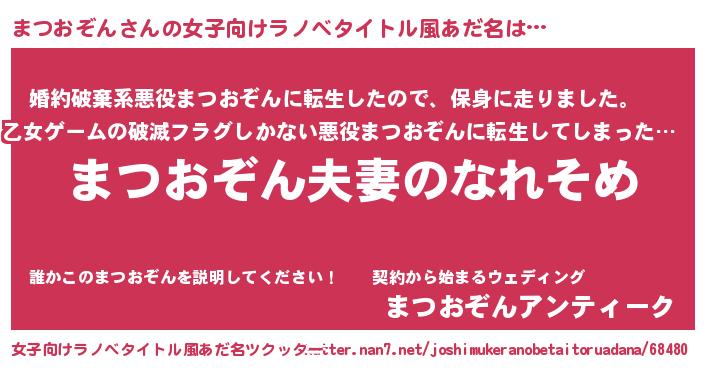 | 男性向けラノベタイトル風あだ名 | 『おまえをオタクにしてやるから、俺をまつおぞんにしてくれ! 』 |