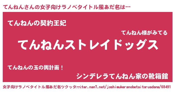 | 男性向けラノベタイトル風あだ名 | 『Re:てんねんから始める異世界生活』 |