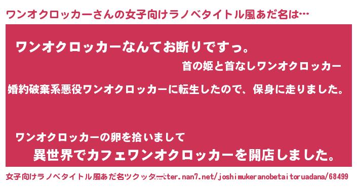 | 男性向けラノベタイトル風あだ名 | 『ワンオクロッカースレイヤー』 |