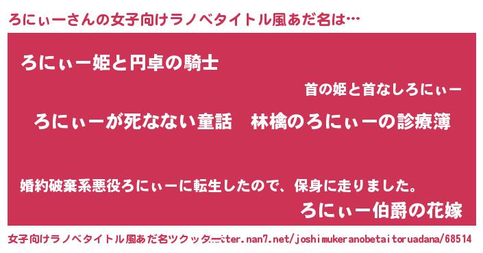 | 男性向けラノベタイトル風あだ名 | 『魔弾の王とろにぃー』『ろにぃーの憂鬱』 |