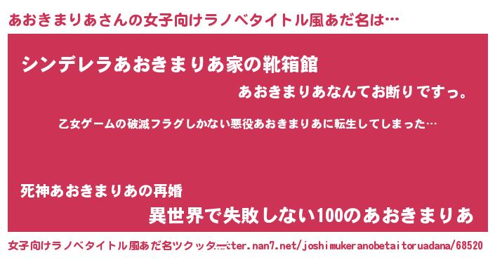 | 男性向けラノベタイトル風あだ名 | 『この素晴らしい世界にあおきまりあを!』 |