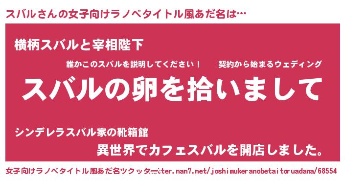 | 男性向けラノベタイトル風あだ名 | 『ダンジョンにスバルを求めるのは間違っているだろうか』 |