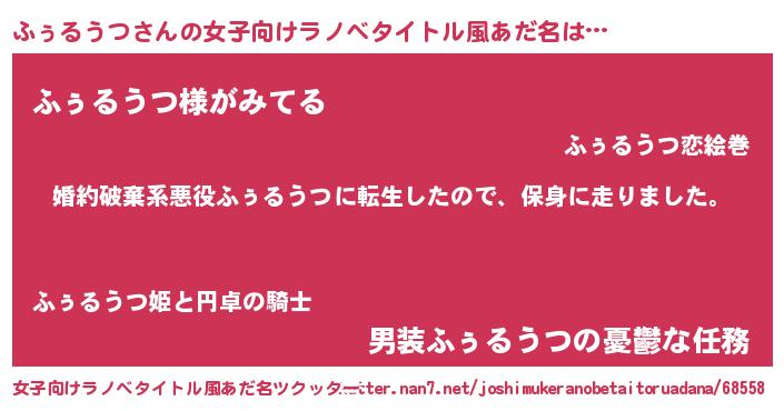 | ヒーロー風カッコイイあだ名 | 『暗黒騎士フゥ』『慈愛の使者ふぅるうつ』 |