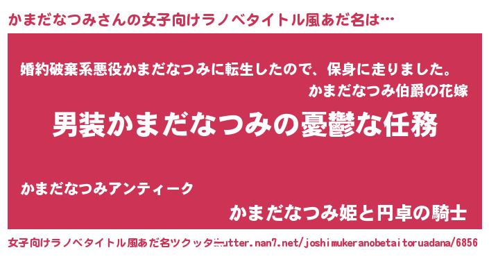 | 男性向けラノベタイトル風あだ名 | 『冴えないかまだなつみの育てかた』 |