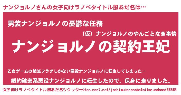 | 男性向けラノベタイトル風あだ名 | 『誰もが恐れるあのナンジョルノが、ぼくの専属メイドになるようです。』 |