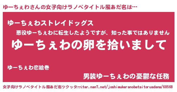 | 男性向けラノベタイトル風あだ名 | 『ダンジョンにゆーちぇわを求めるのは間違っているだろうか』 |